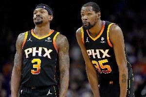 新帅布登霍尔泽上任在带来了新气象,但仅限于第一个月。拥有三巨头的太阳上赛季开局堪称完美,前九场取得8胜1负并列西部第一,随着球队的防守短板暴露,球队很快又陷入了低迷,再次重复着之前一个赛季的“要死不活”。进入2025年,布登做出重大改变,将比尔降为替补,球队短暂重回正轨。但随着交易截止日的临近,主将杜兰特多次出现在交易流言之中,甚至有传言称他要重回金州勇士,虽然他最终留队,但此时的太阳早已失去斗志。最后10场比赛,太阳输掉了其中9场,以西部第十一、无缘附加赛结束了又一个混乱的赛季。